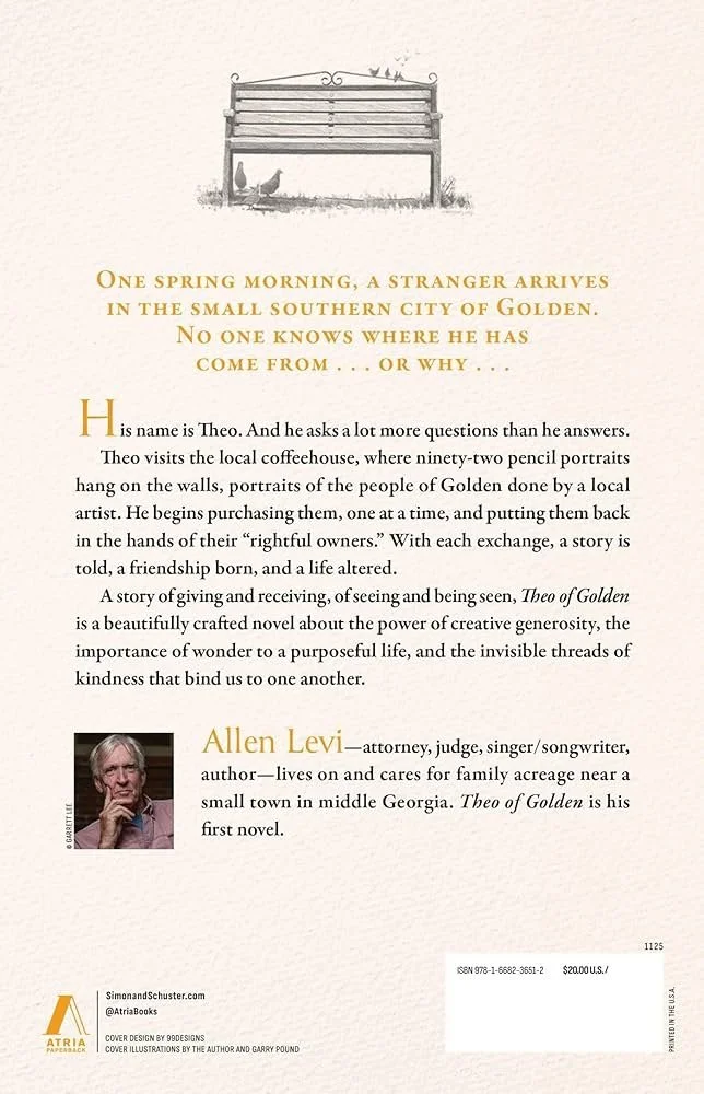 Theo is an 86-year-old gentleman, possessed of a certain wealth, well-travelled in the world, who speaks five languages. For some reason known only to himself, on a certain spring day just before Easter, he moves from upscale New York City, where his office is, into the small town of Golden. He is not yet certain how long he will live there. On his first day in the town, he goes into the local coffee shop, and notices on the walls of the shop a large number of hand-sketched portraits of local people, all done in pencil, on white paper. After drinking the excellent coffee, he decides to return later, when the shop is not so busy. On his return he spends a long-time walking around the walls, gazing intently at the beautifully drawn portraits, studying both the artists fine work, and the faces he sees depicted there. There are 94 of these portraits hanging on the walls of this café - art gallery. Speaking with the owner of the café, he learns that the portraits are the work of a local artist, named Asher, whose wife was killed a while back in a car accident, and whose daughter, seriously injured, he cares for. Theo is surprised to learn that although the portraits are of local people, are beautifully done, and are for sale at very reasonable prices, so many have not been purchased. An idea is born.